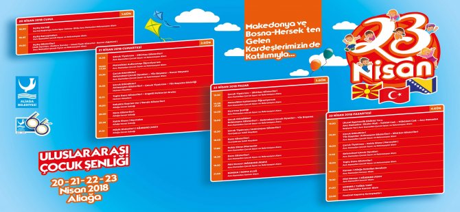 Aliağa Belediyesi’nin 20-21-22-23 Nisan tarihlerinde gerçekleştireceği ve Bosna Hersek ile Makedonya’dan misafir ülke çocuklarının da katılacağı kutlama etkinlikleri Aliağa’nın Helvacı ve Yeni Şakran Mahallelerini de kapsayacak.