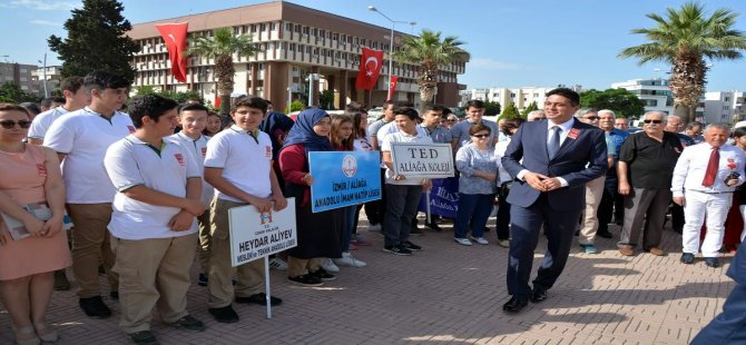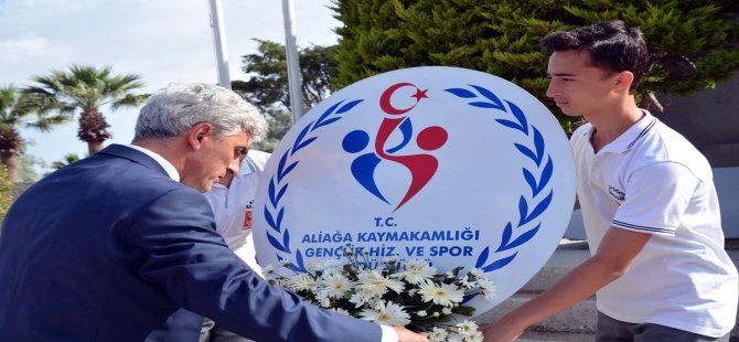 Tören, Aliağa Gençlik Hizmetleri ve Spor İlçe Müdürü Serkan Ataman’ın Atatürk Anıtı'na çelenk sunmasıyla başladı. Saygı duruşu ve istiklal marşının hep bir ağızdan okunmasının ardından program Aliağa Heydar Aliyev Mesleki ve Teknik Anadolu Lisesi’nde devam etti. Programda günün anlam ve önemini belirten ilk konuşmayı Aliağa Heydar Aliyev Mesleki ve Teknik Anadolu Lisesi müdürü Mehmet Sıtkı Arı yaptı.