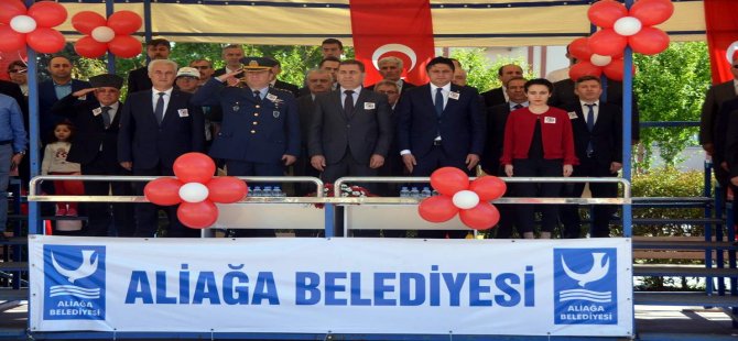 Cumhuriyet Meydanında Aliağa İlçe Milli Eğitim Müdürü Ogün Derse’nin Atatürk Anıtı'na çelenk sunmasıyla başlayan tören Atatürk İlkokulu’nda gerçekleştirilen kutlama etkinlikleri ile devam etti. Törene Aliağa Kaymakamı Bayram Yılmaz, Aliağa Belediye Başkanı Serkan Acar, Aliağa Cumhuriyet Savcısı Nezaket Demirci, Garnizon Komutanı Albay Faruk Altun, İlçe Jandarma Komutanı Rıfkı Kulaksız, belediye meclis üyeleri, daire amirleri, siyasi parti temsilciler, stklar, öğretmenler, öğrenciler ve çok sayıda vatandaş katıldı.
