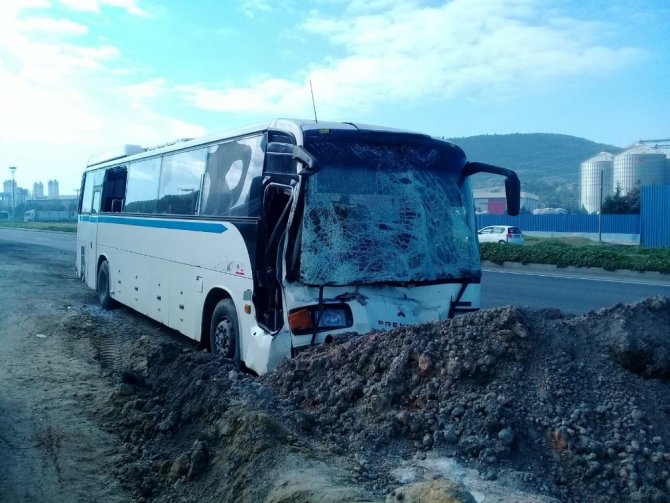 Edinilen bilgiye göre, İzmir- Çanakkale karayolu Yeni Foça kavşağında meydana gelen kazada, sürücü S.İ. idaresindeki otobüs ile aynı yönde giden M.A. idaresindeki otobüse arkadan çarptı. Kazada otobüs sürücüsü S.İ. ile yolcular Ö.K.K., M.S.Y., A.Ö., İ.K., AK., H.A., T.D., O.A., S.K. yaralandı. Çevredeki vatandaşların kazayı bildirmesi üzerine olay yerine gelen 112 ekipleri, yaralılar Aliağa Devlet Hastanesine kaldırıldı. Yaralıların durumlarının iyi olduğu öğrenilirken, jandarma tarafından kazayla ilgili soruşturma başlatıldı.