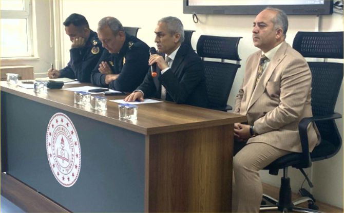Son dönemde Türkiye genelinde okullara yönelik yaşanan olumsuz olaylar doğrultusunda, Aliağa’da okul güvenliğinin artırılması amacıyla İlçe Milli Eğitim Müdürlüğü toplantı salonunda gerçekleştirilen