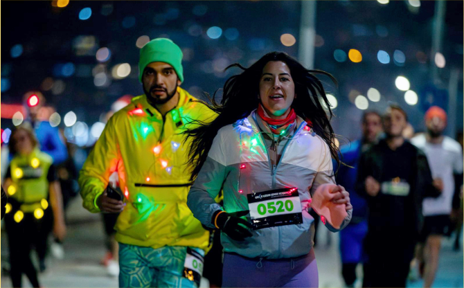İzmir Büyükşehir Belediyesi, yılın en uzun gecesi 21 Aralık’ta 6,5 kilometrelik koşu düzenledi. En Uzun Gece Koşusu’na katılan İzmirliler, vücutlarına sardıkları ışıklarla renkli görüntüler oluşturdu.