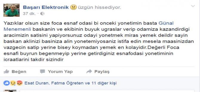 FESO yönetiminin bu sürpriz kararı tepkileri de beraberinde getirdi. Alınan kararı Oda tarafından atılan bilgilendirme mesajı ile öğrendiklerini belirten FESO üyesi bazı esnaflar, klavyenin başına geçerek tepkisini dile getirdi.