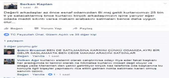 FESO Başkanı Ahmet Koldaş, konu hakkında henüz bir basın açıklaması yapmazken, ‘Oto kurtarıcı’ hizmetinden Oda ekonomisine zarar verdiği gerekçesiyle vazgeçildiği öne sürüldü.