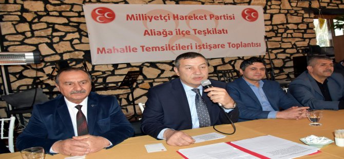 Milliyetçi Hareket Partisi (MHP) Aliağa İlçe Teşkilatı, mahalle temsilcilerine yönelik bilgilendirme ve istişare toplantısı düzenledi. Yoğun katılımın olduğu toplantıda 2019 yılında yapılması planlanan Cumhurbaşkanlığı, Mahalli İdareler ve Milletvekilliği Genel Seçimleri hakkında değerlendirmelerde bulunuldu.